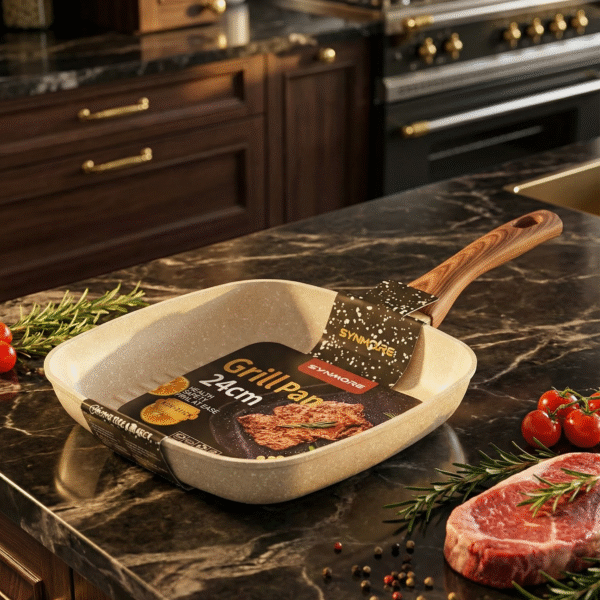 السعر الأصلي هو: 2.500,00 EGP.1.949,00 EGPالسعر الحالي هو: 1.949,00 EGP.طاسة جريل غير لاصقة SYNMORE – مقاس 24 سم بيد خشبيّة أنيقة