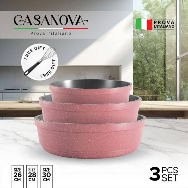 السعر الأصلي هو: 5.649,00 EGP.4.799,00 EGPالسعر الحالي هو: 4.799,00 EGP.طقم صواني فرن مع خفاقة جرانيت كازانوفا، 3 قطع (26 سم، 28 سم ، 30 سم)
