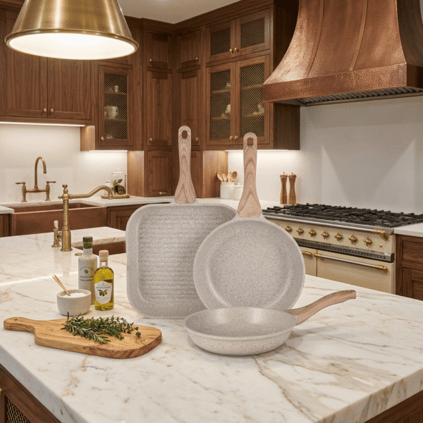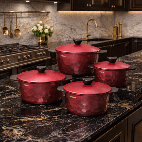 طقم حلل ومقلاة جرانيت أرشيا 5 قطع – مقاسات عملية لكل استخدام، طبخ صحي بدون التصاق