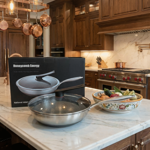 السعر الأصلي هو: 295,00 EGP.189,00 EGPالسعر الحالي هو: 189,00 EGP.طقم طاسة قلي جرانيت مقاومة للالتصاق 24/26/28 سم، تقنية توزيع الحرارة، مقبض خشبي، 3 قطع
