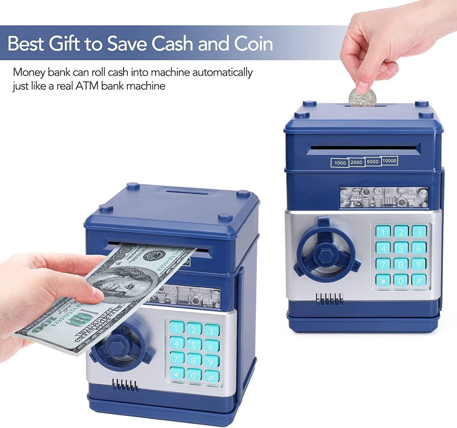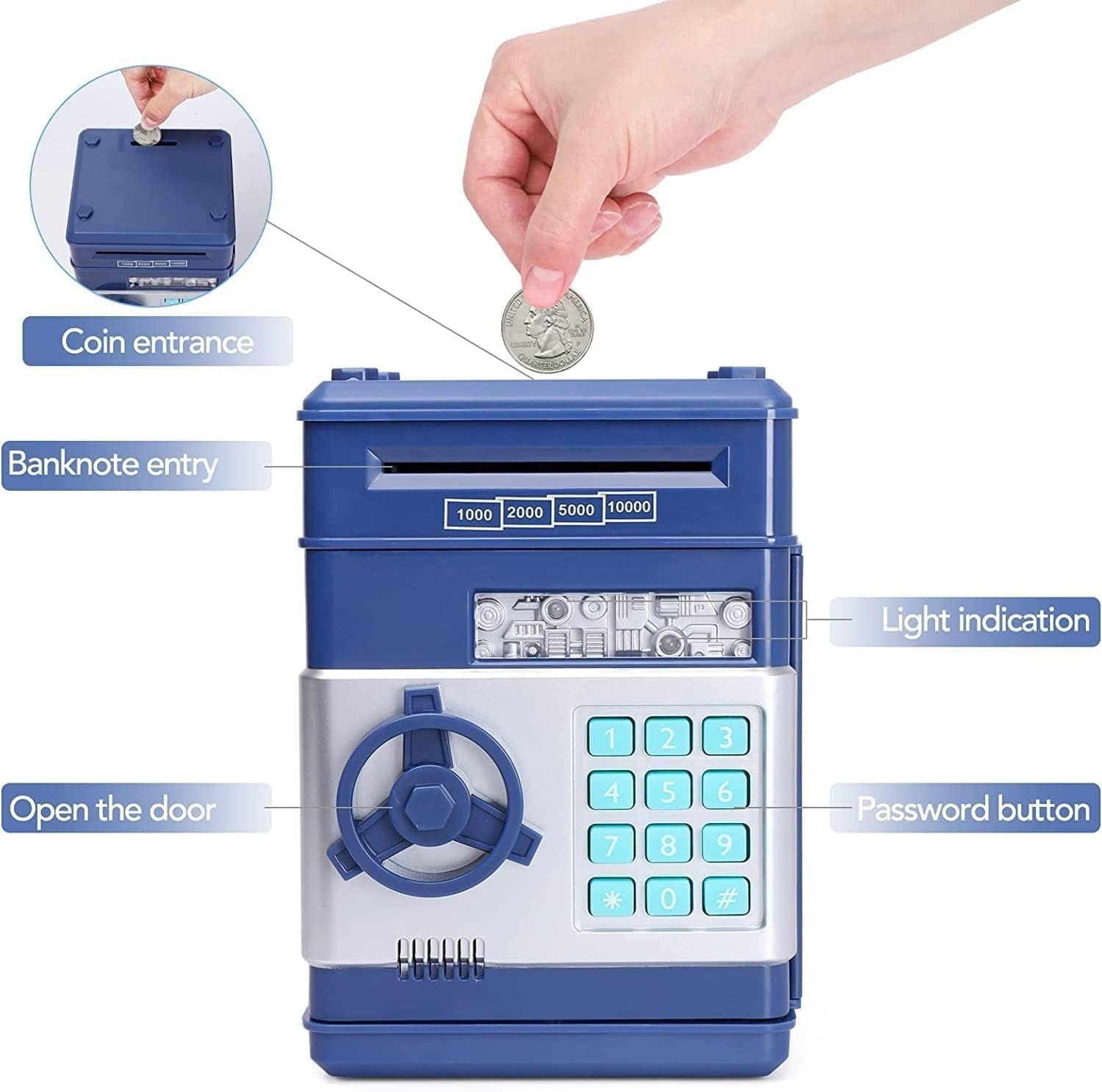 حصالة صراف آلي للاطفال ، آمنة لتوفير المال مع صندوق بكلمة مرور