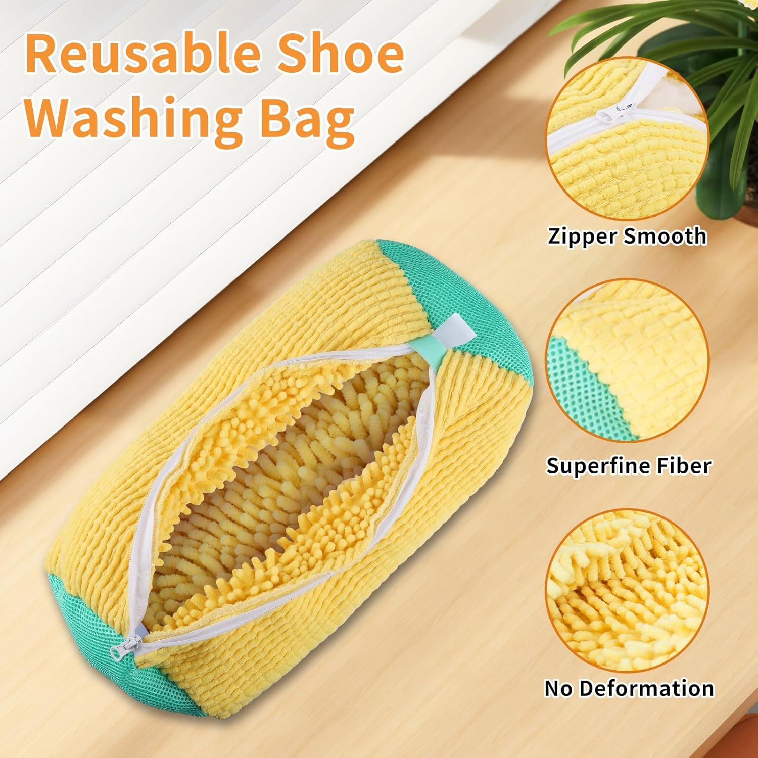 - مناسبة لمعظم أنواع الأحذية: سواء كنت تقوم بتنظيف أحذية الجري أو الأحذية اليومية أو أحذية الأطفال، ببساطة ضعها في الشنطة، وأضف المنظفات المفضلة لديك، وقم بضبط الغسالة على دورة خفيفة، وضع شنطة غسيل الأحذية في الغسالة والمجفف.