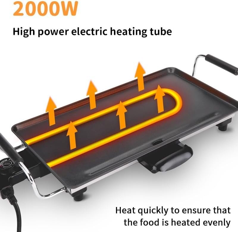 شواية كهربائية احترافية مقاومة للالتصاق بقدرة 2000 واط من DSP، لون أسود