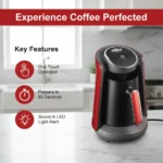 تتميز ماكينة أرزوم أوكا مينيو بقدرتها على تحضير أربعة أكواب في المرة الواحدة. استمتع بفنجان قهوة تركية غنية مثالية في 80 ثانية فقط، إذا كنت من محبي بدء يومك بصحبة أصدقائك أو عائلتك. بفضل تشغيلها بزر واحد، تُعدّ سهلة الاستخدام ومريحة لتحضير فنجان قهوة تركية مثالي. صُممت لتناسب أي مكان في المنزل وتوفر المساحة.