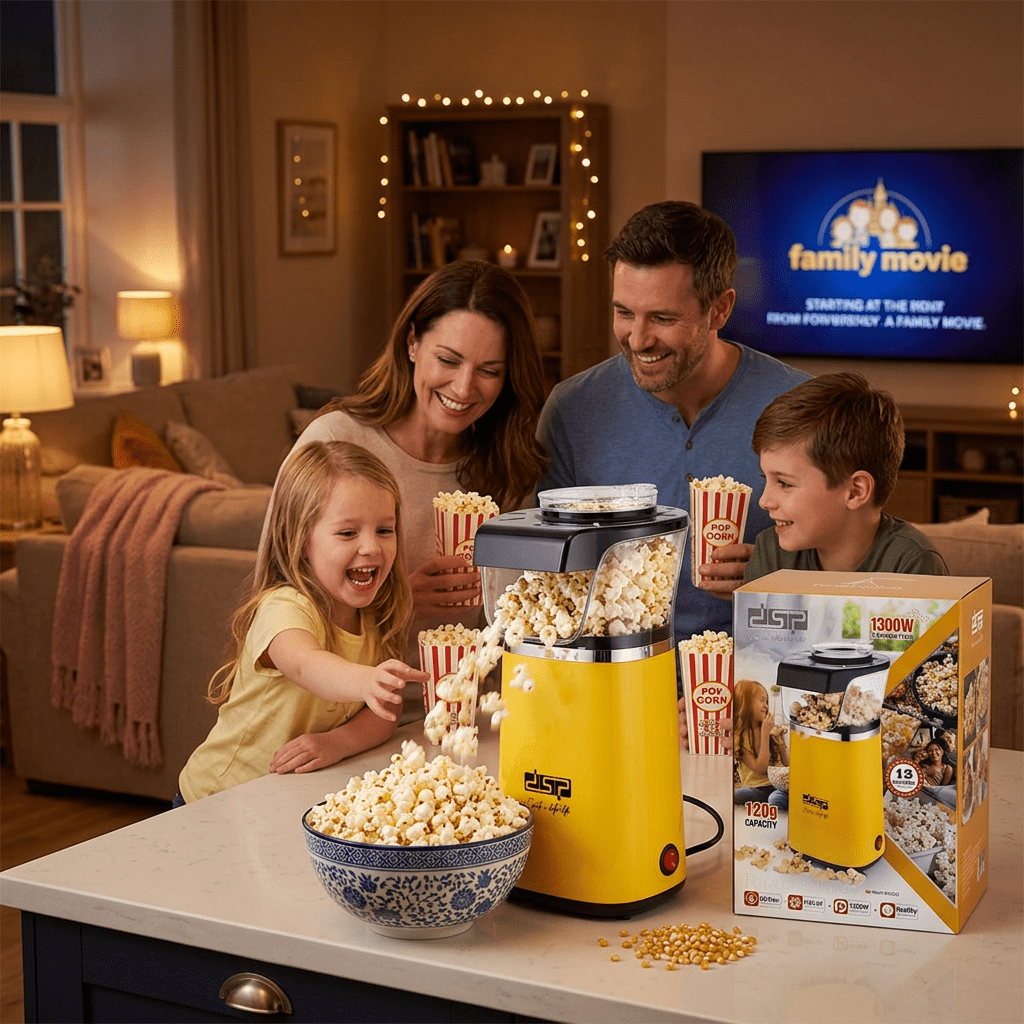 استمتعي بألذ فشار في البيت بكل سهولة مع ماكينة الفشار من DSP بقوة 1300 واط! تصميم عملي ولون أصفر مبهج يضيف لمسة حيوية لمطبخك، مع أداء سريع ونتائج مثالية كل مرة.