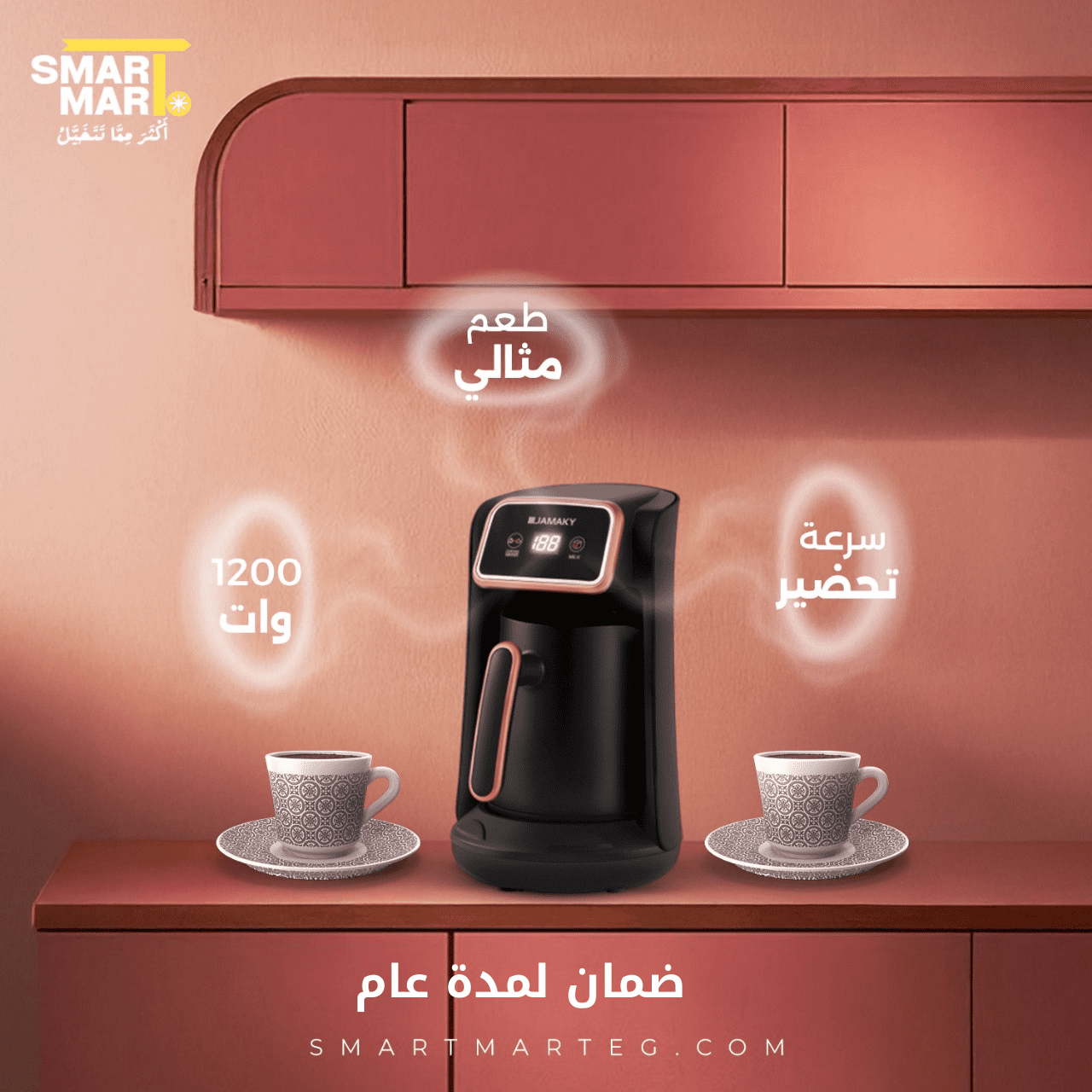 احصلى على ماكينة القهوة التركي من جاماكي لتحضير القهوة بسرعة وكفاءة مع شاشة LED لعرض درجة الحرارة وتصميم ذكي يمنع تراكم الرطوبة ويحافظ على النكهة الأصيلة، كما تتميز بتعدد الاستخدامات (قهوة – ماء – حليب ساخن) وخاصية الإيقاف التلقائي للأمان وسهولة التنظيف بفضل خامات مقاومة للصدأ.