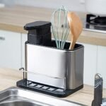 منظم لحمل المعالق مزود بمضخة صابون للاطباق، مصنوع من الستانلس ستيل