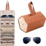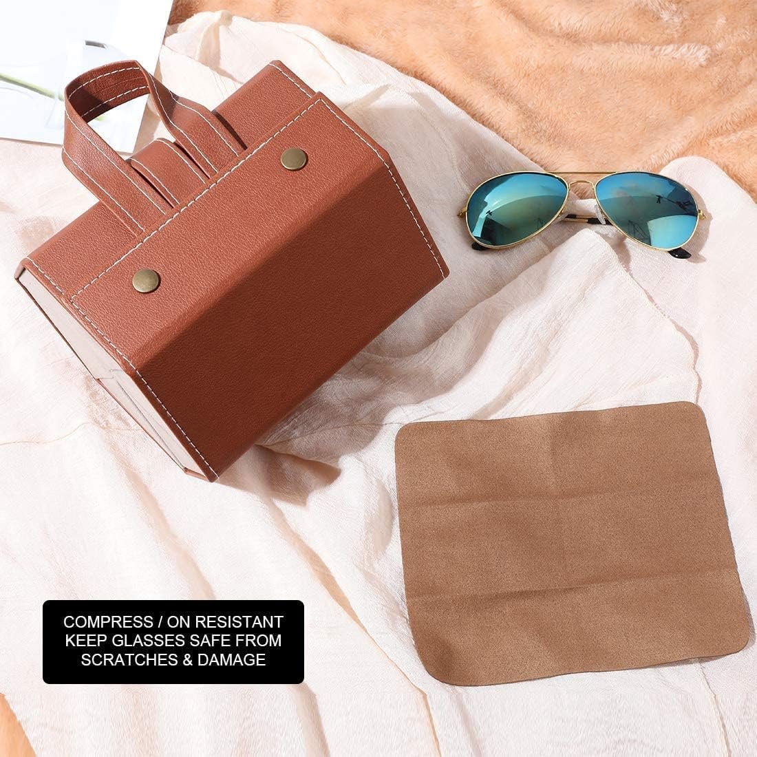 منظم نظارات من الجلد من 5 فتحات محمول وقابل للطي لحمل وتخزين وعرض النظارات متعددة الأغراض في المنزل وعند السفر